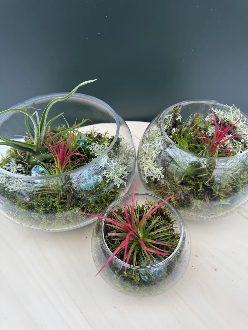 Σύνθεση με φυσικό βρύο και αεροφυτά. Σε τρία μεγέθη.